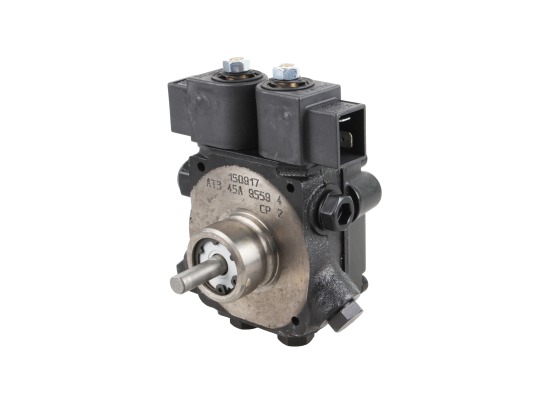 Жидкотопливный насос AT3 45 A 9559 4P 0500 от европейского концерна SUNTEC является представителем высокоэффективных устройств, перекачивающих горючее в двух режимах подачи с настраиваемыми параметрами давления. Модели линейки AT3 оборудованы отсечным и байпасным электромагнитными клапанами, а также портом для подключения манометра, который измеряет давление топлива на форсунке при работе на второй ступени.