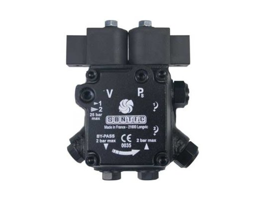 Топливный насос для горелки AT3 V 45 A 9660 4P 0500 работает в двух режимах давления с регулируемыми параметрами, снабжен 2 электромагнитными клапанами с функцией запирания. Конструкцией предусмотрен специальный порт на крышке для снятия показаний давления в форсунке только в режиме высокого давления.